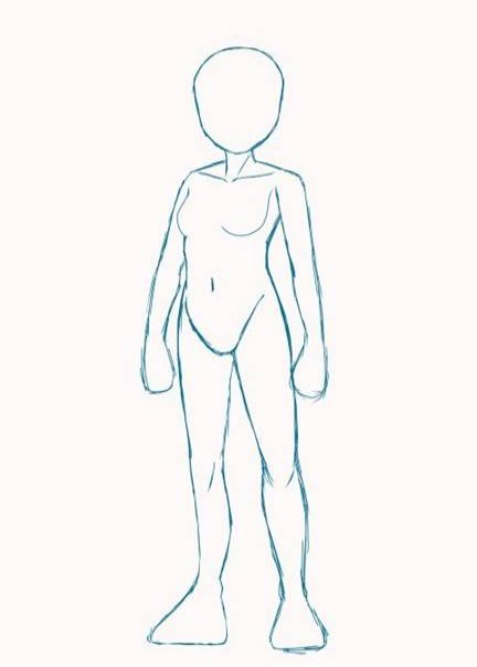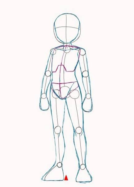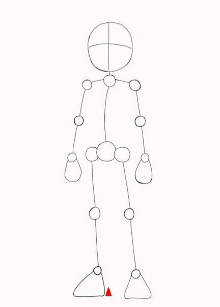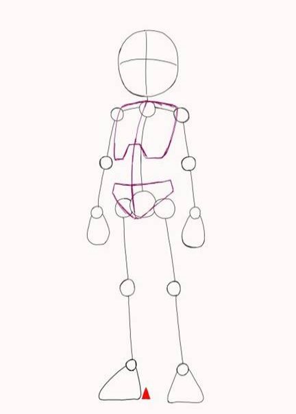 | で、胴体が描けたら腕と脚を骨格に添って形取り、肉付けを行いましょう。 |