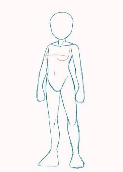 | 肋骨と骨盤が描けると、胸板と腰のラインが決まるので、そこを元にして胴体を描いてやります。 |