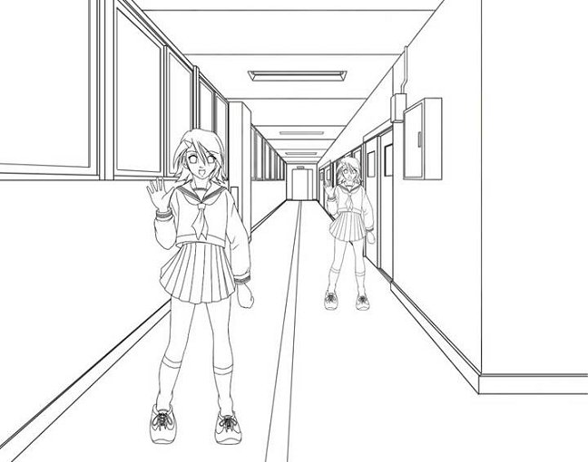 | とは言っても、キャラの配置も背景と同じパースでなくては意味がありません。 |